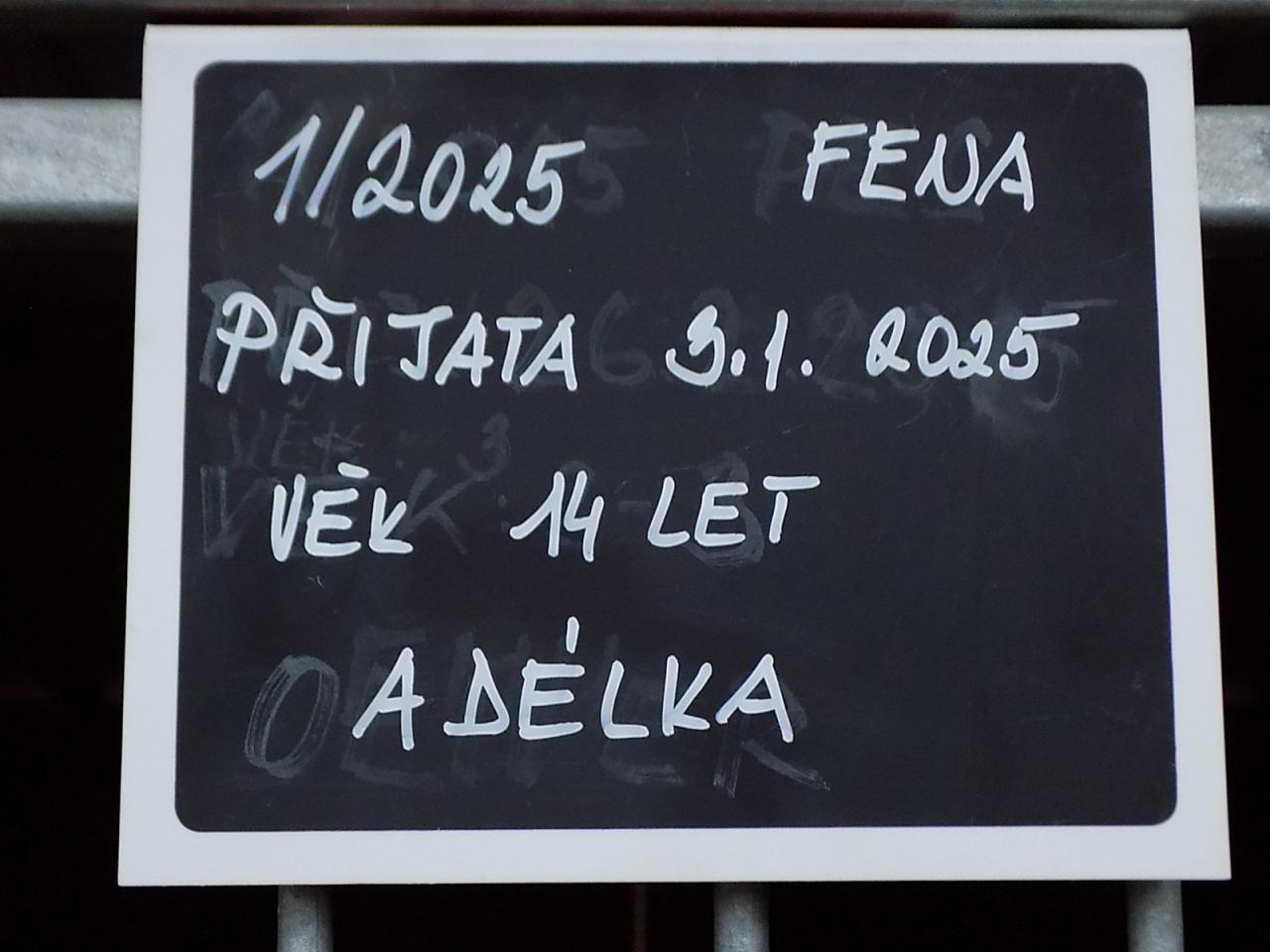 Dne 3.1.2025 byla fenka Adélka přijata ze Skomelna do našeho útulku, protože jí umřela panička.
