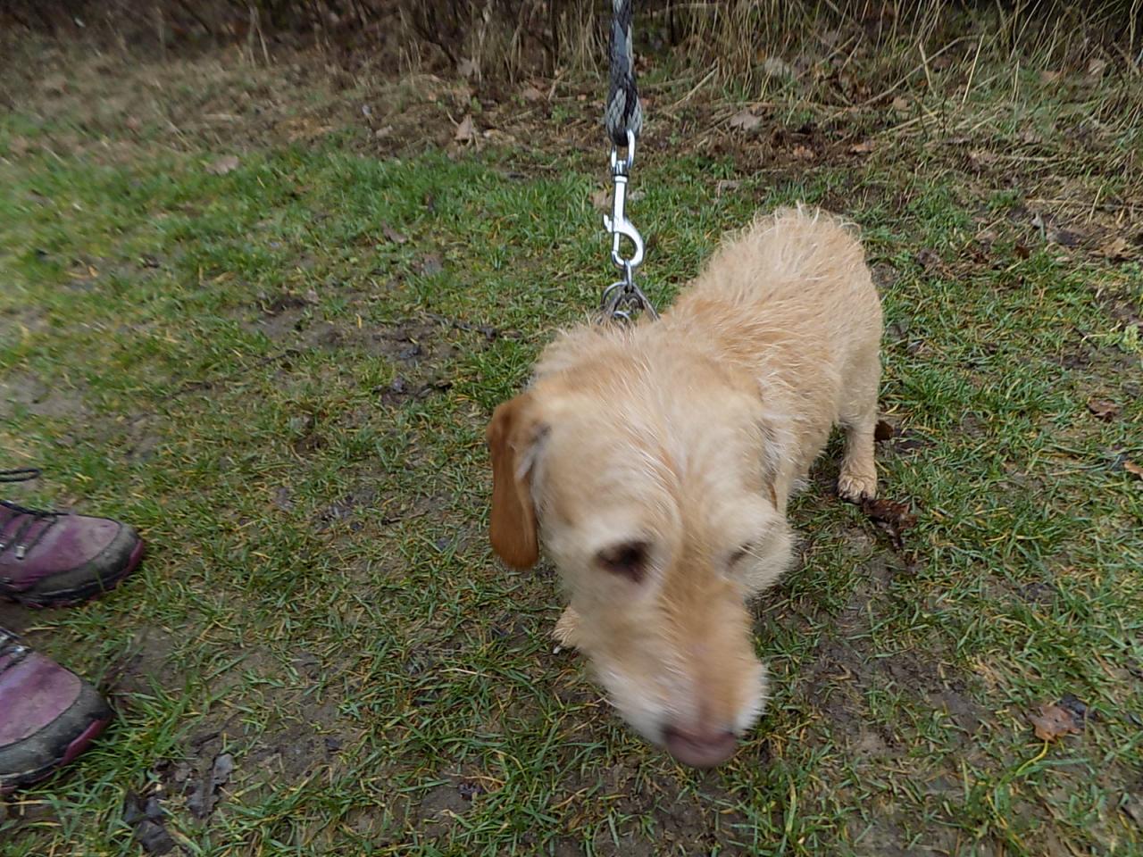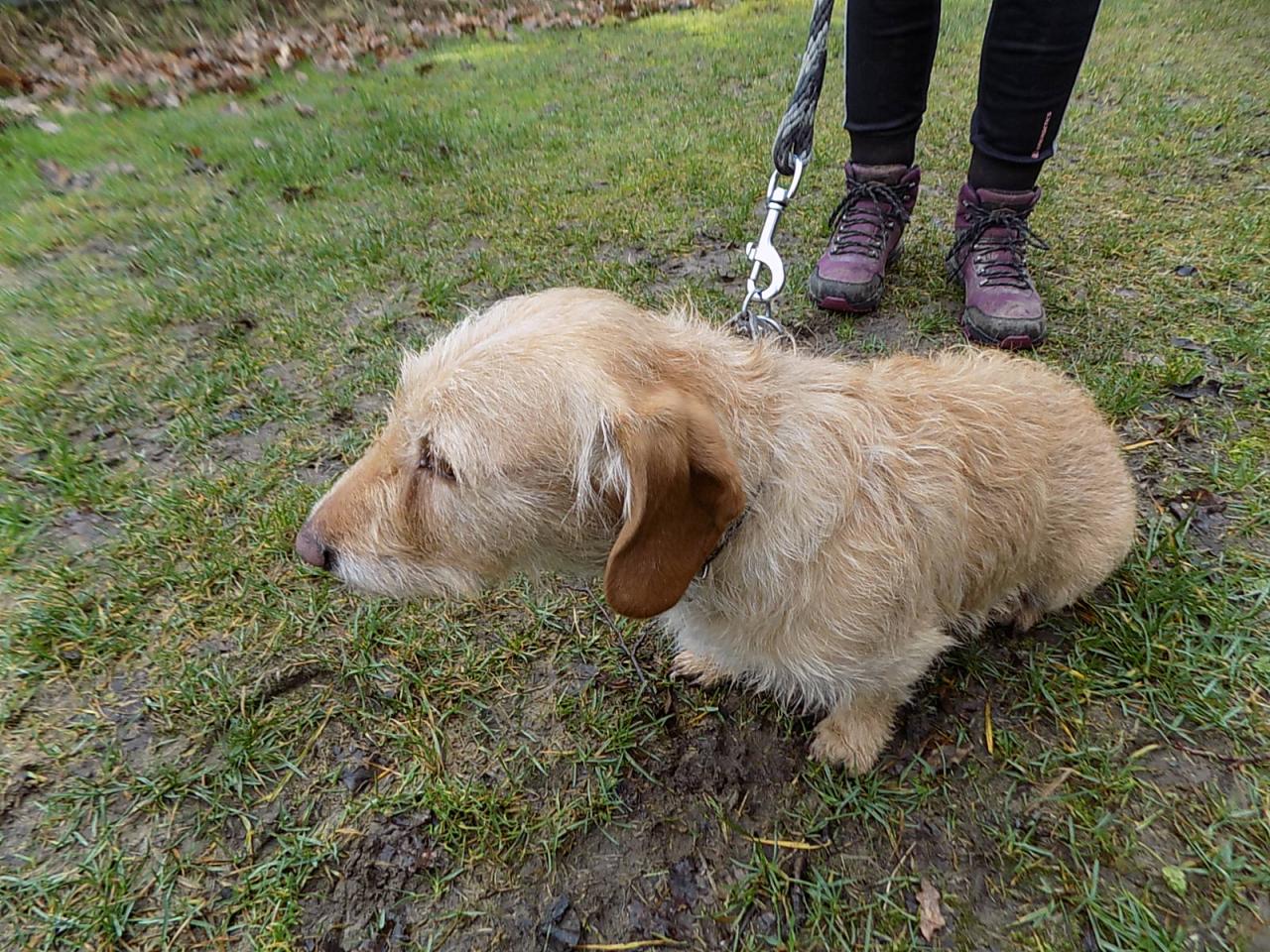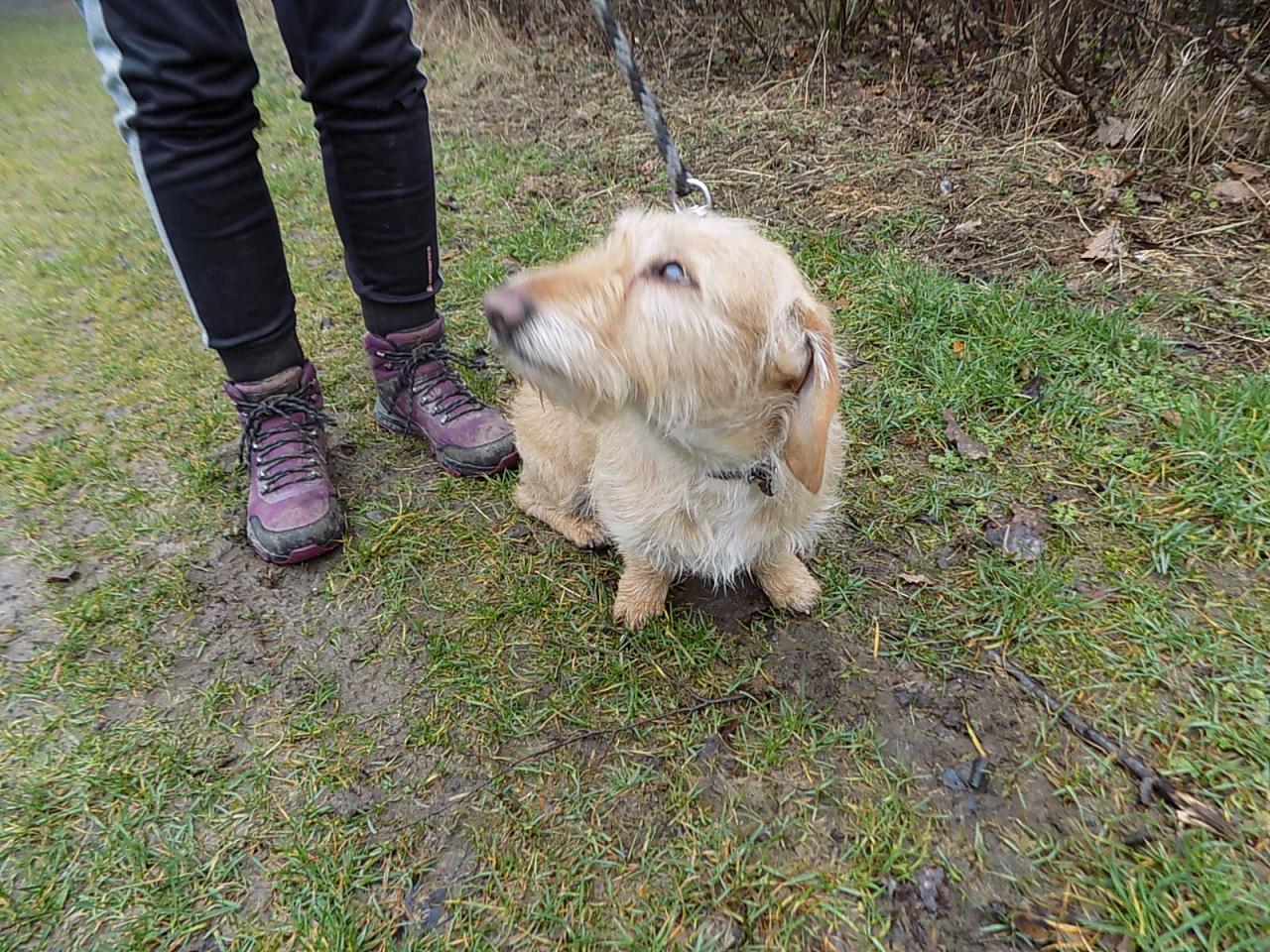 V době přijetí asi šestiletý kříženec jezevčíka byl přivezen z Radnic po zemřelém majiteli. Váží 10 kg, čip neměl, je hodný, přítulný, ostatních psů si nevšímá. V současné době je po karanténě. Č. čipu 203164000156285, je hodný, milý, čistotný, vhodný i do bytu.