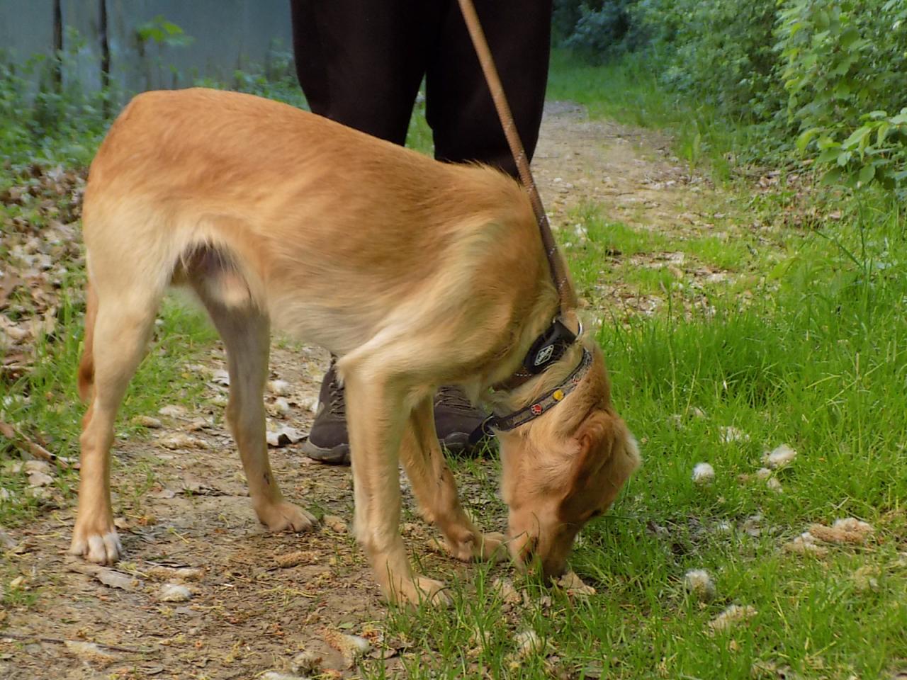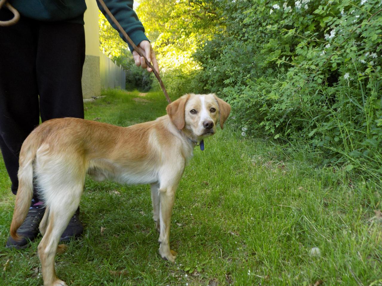 Dne 12.5.2025 jsme dovezli z Třemošné odchyceného pejska. Jedná se (v době odchytu) o asi devítiměsíčního křížence labradora s bíglem?, váha 12 kg, bez čipu. Je to pejsek ve stavu podvyživeném, nejeví známky týrání. Měl na sobě modrošedý obojek s barevnými pacičkami.  Je hravý, hodný, nemá rád kočky, nesocializovaný.