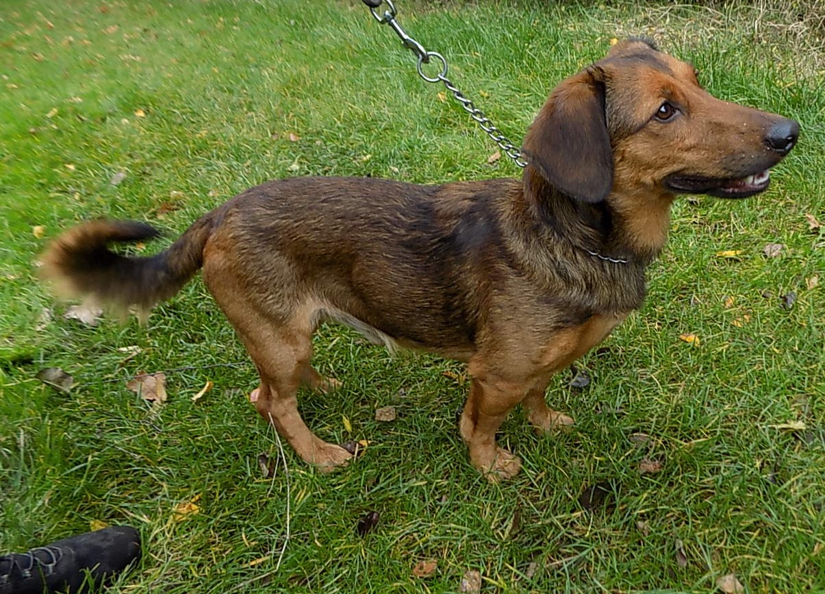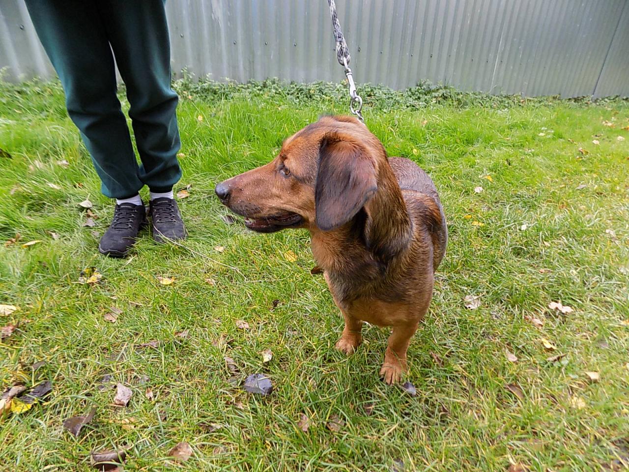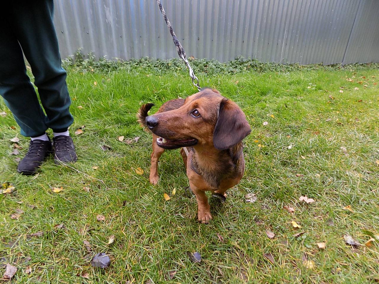 Dvouletý kříženec jezevčíka, pejsek přijat z Kakejcova dne 17.10.2024, vydán dne 10.11.2024 do nové rodiny.