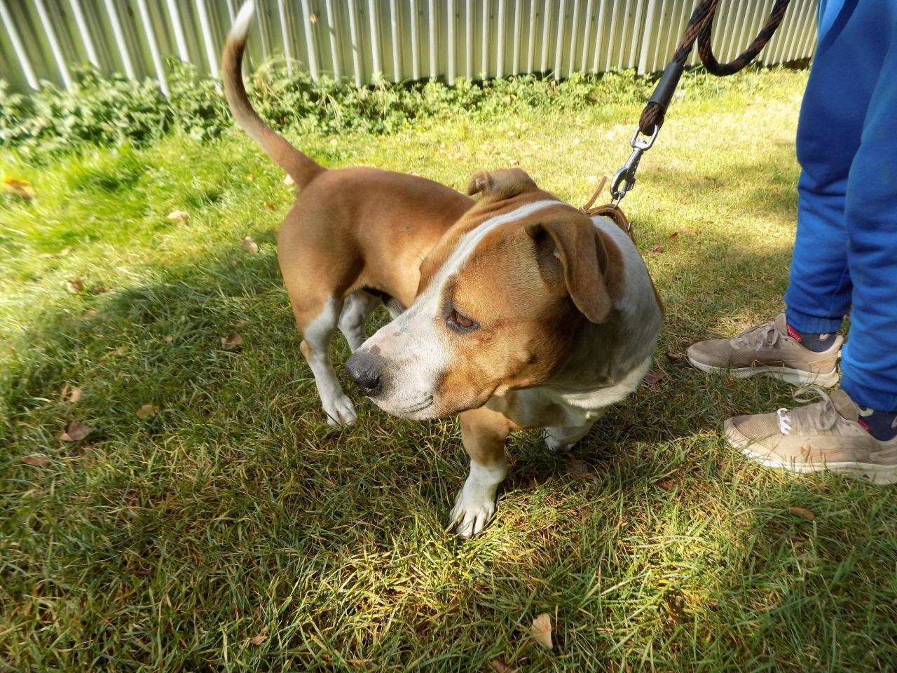 Pes byl odchycen 3.10.2023 v obci Volduchy, čtyři roky, kříženec staforda. Dne 11.4.2024 byl vydán do nové rodiny z Kařeza.